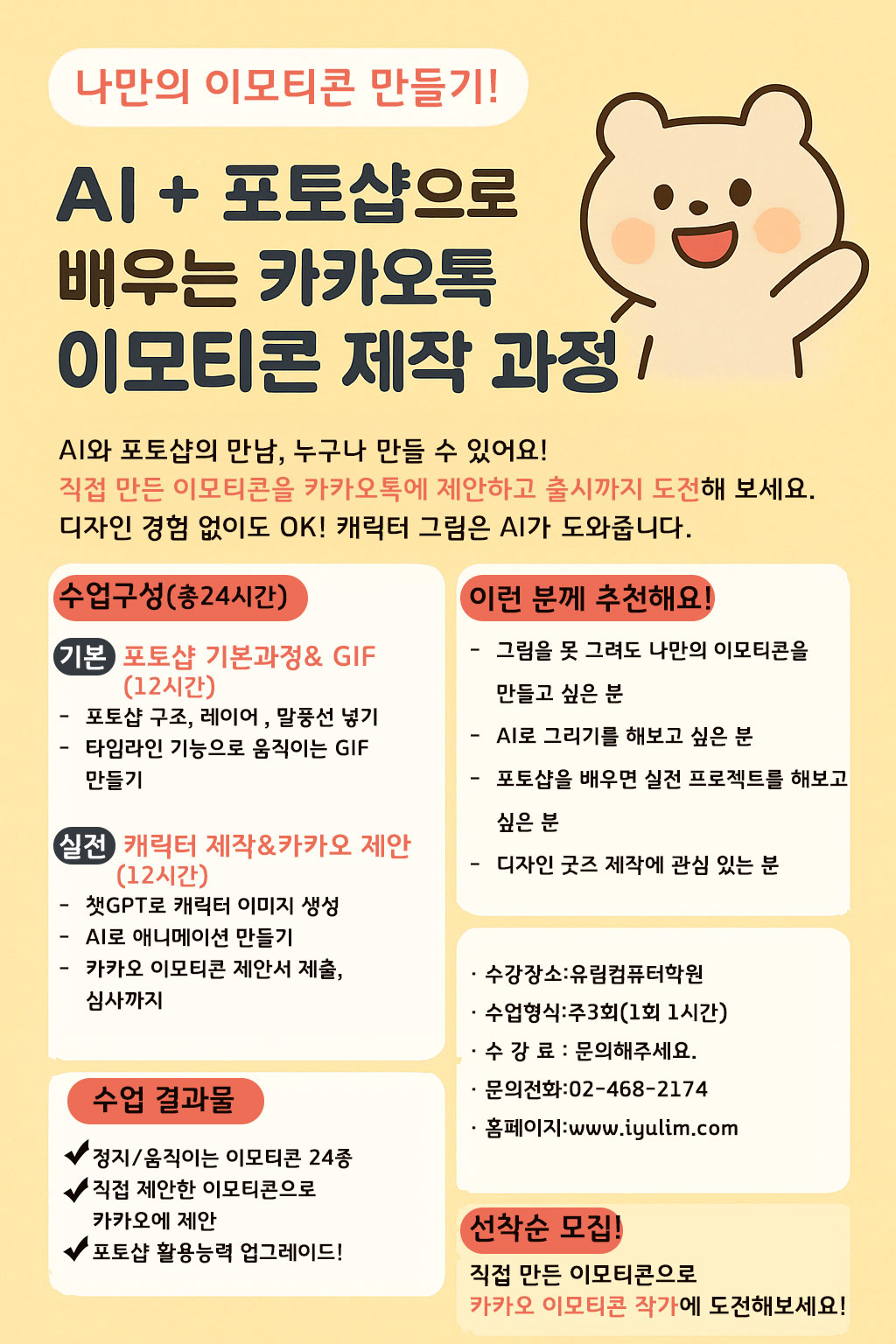성수동 컴퓨터 학원 커리귤럼 소개 : AI(인공지능)+포토샵으로 배우는 카카오톡 이모티콘 제작 과정
